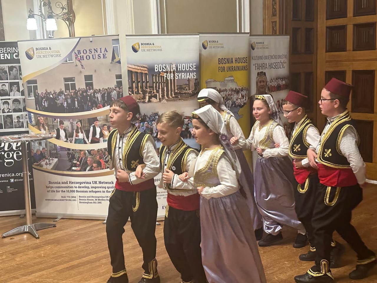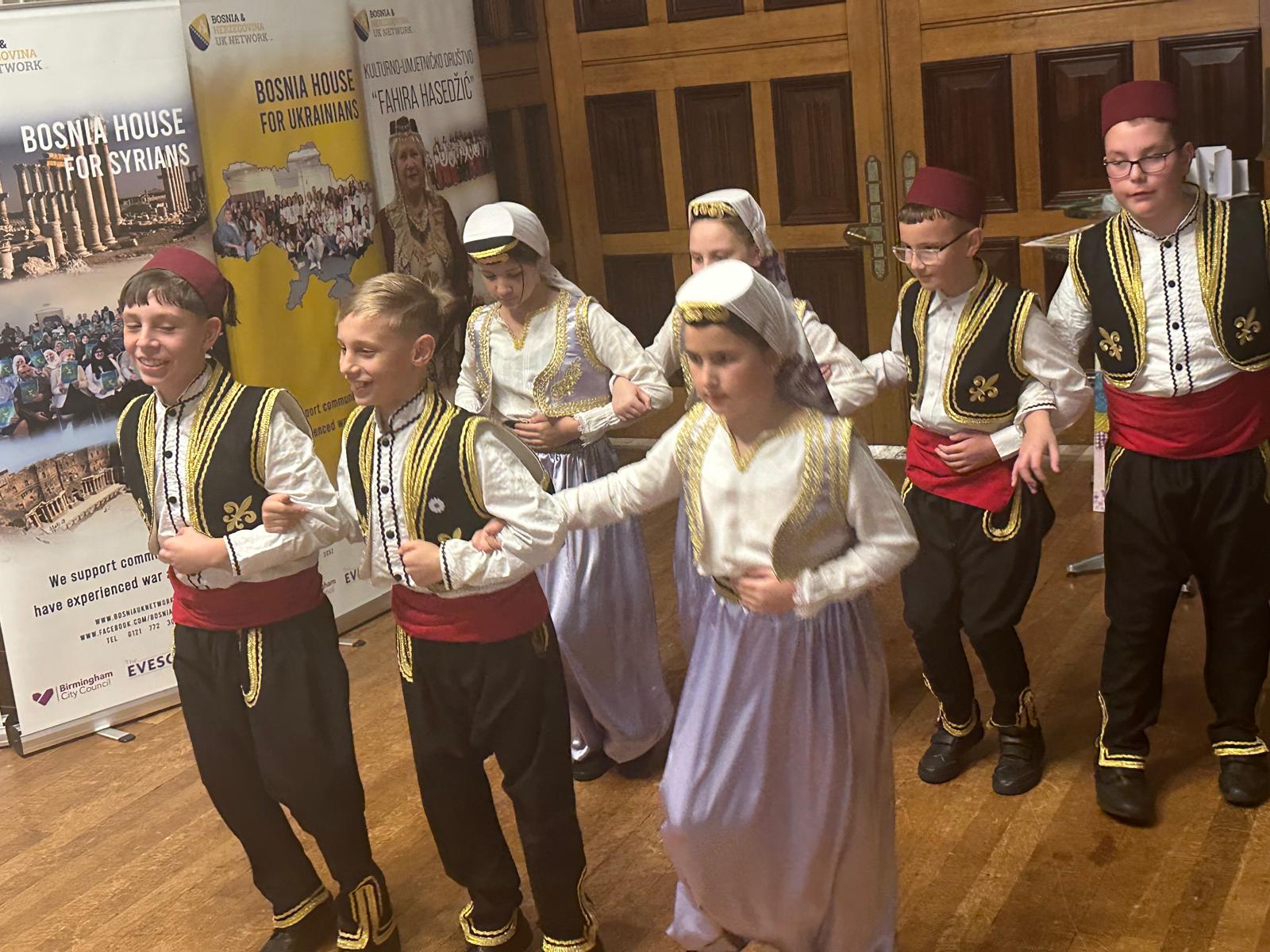 Kulturni program snažno je dočarao duh utočišta i zajedništva. Inspirativni nastup KUD-a Fahira Hadžetić, kroz autentične bosanske narodne igre, podsjetio je na snagu kulturnog identiteta i važnost očuvanja naslijeđa uz istovremeno građenje novih života. Veče su dodatno obogatili nastupi Hora St Vincent’s School, hora In Her Shoes, orkestra Vinochock, grupe Zirak, kao i dramski doprinosi projekta Stories of Hope and Home, te nastupi škola i zajedničkih grupa koje širom Birminghama promovišu vrijednosti utočišta i solidarnosti.