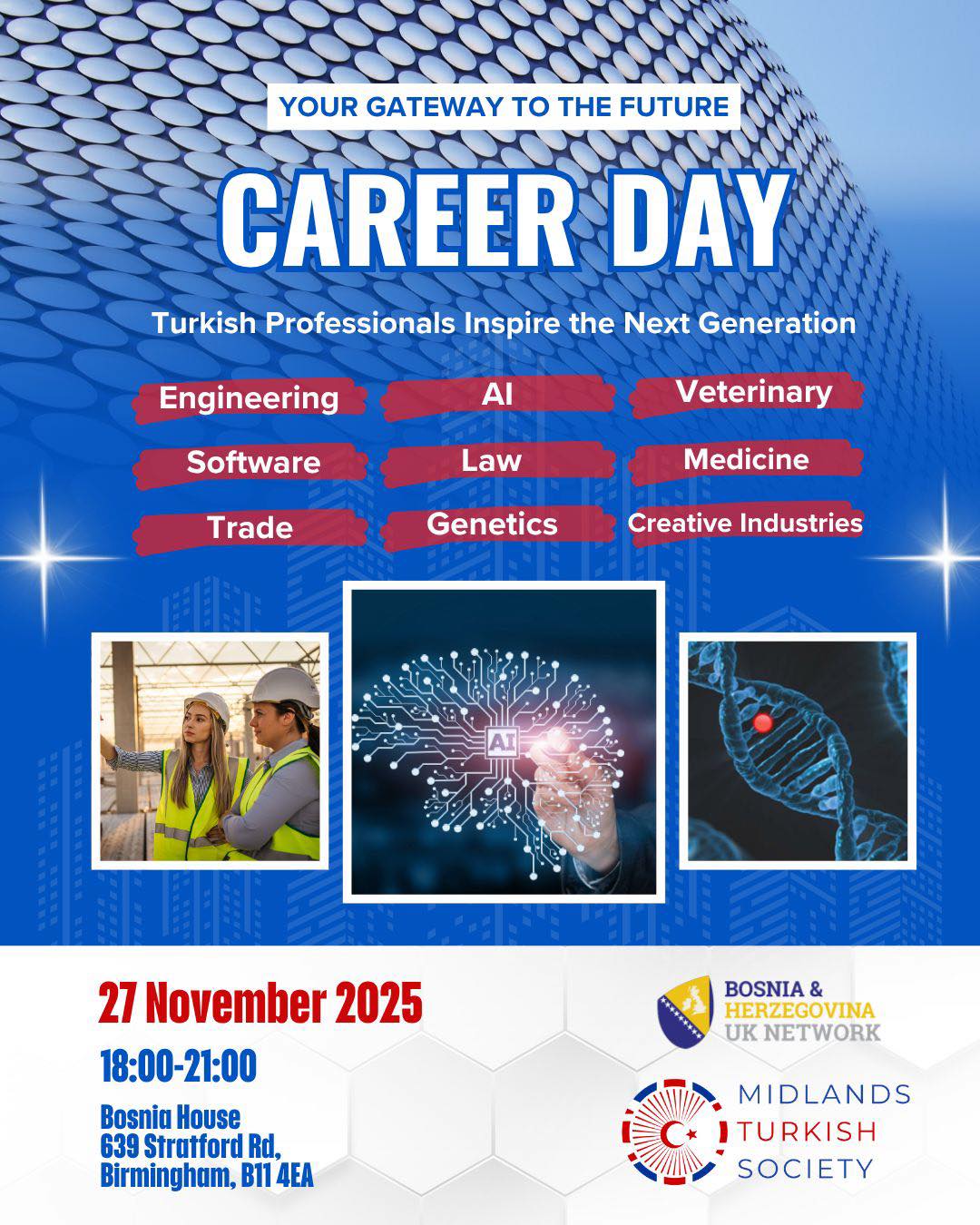 Organised by the Midlands Turkish Society in partnership with the Bosnia & Herzegovina UK Network , this event aims to help young people with career planning and university choices through real-life stories and networking opportunities.